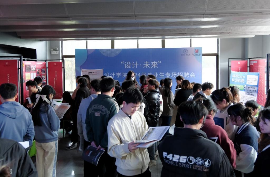 在艺设楼一楼举办“设计·未来”专场招聘会,学院领导班子、辅导员、本硕毕业生参加此次招聘会。