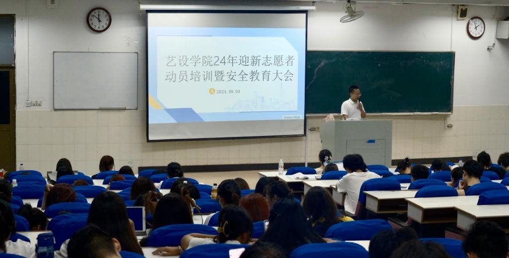 于9月4日在阶梯教室102召开2024年迎新志愿者培训动员大会。会议由学院团委书记、2024级新生辅导员汪正主持,2023级辅导员王倩倩、院团委学生会以及2023级全体志愿者参加此次会议。