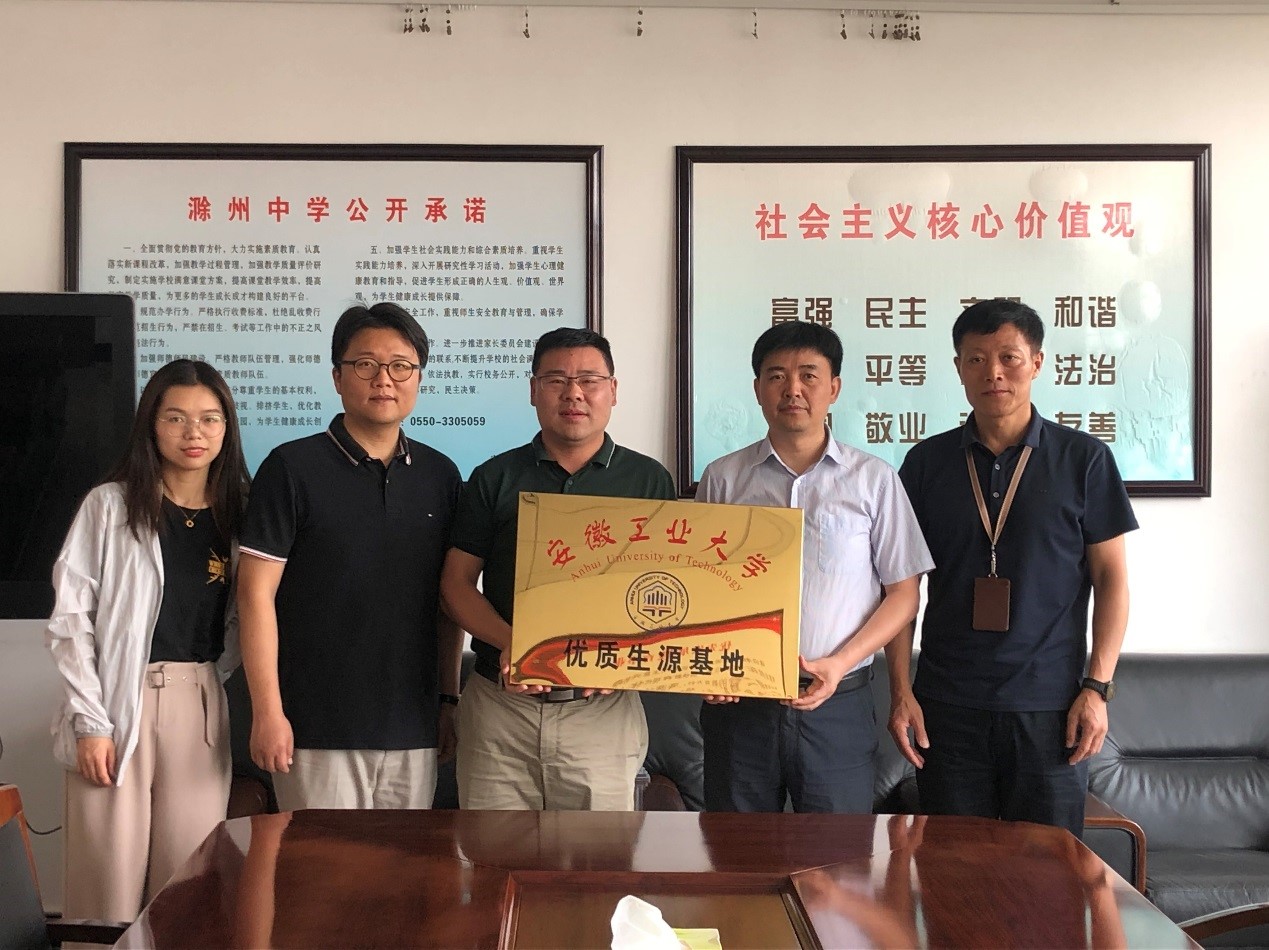 2021年招生宣传工作,代表学校与滁州中学签订优质生源基地协议并授牌。