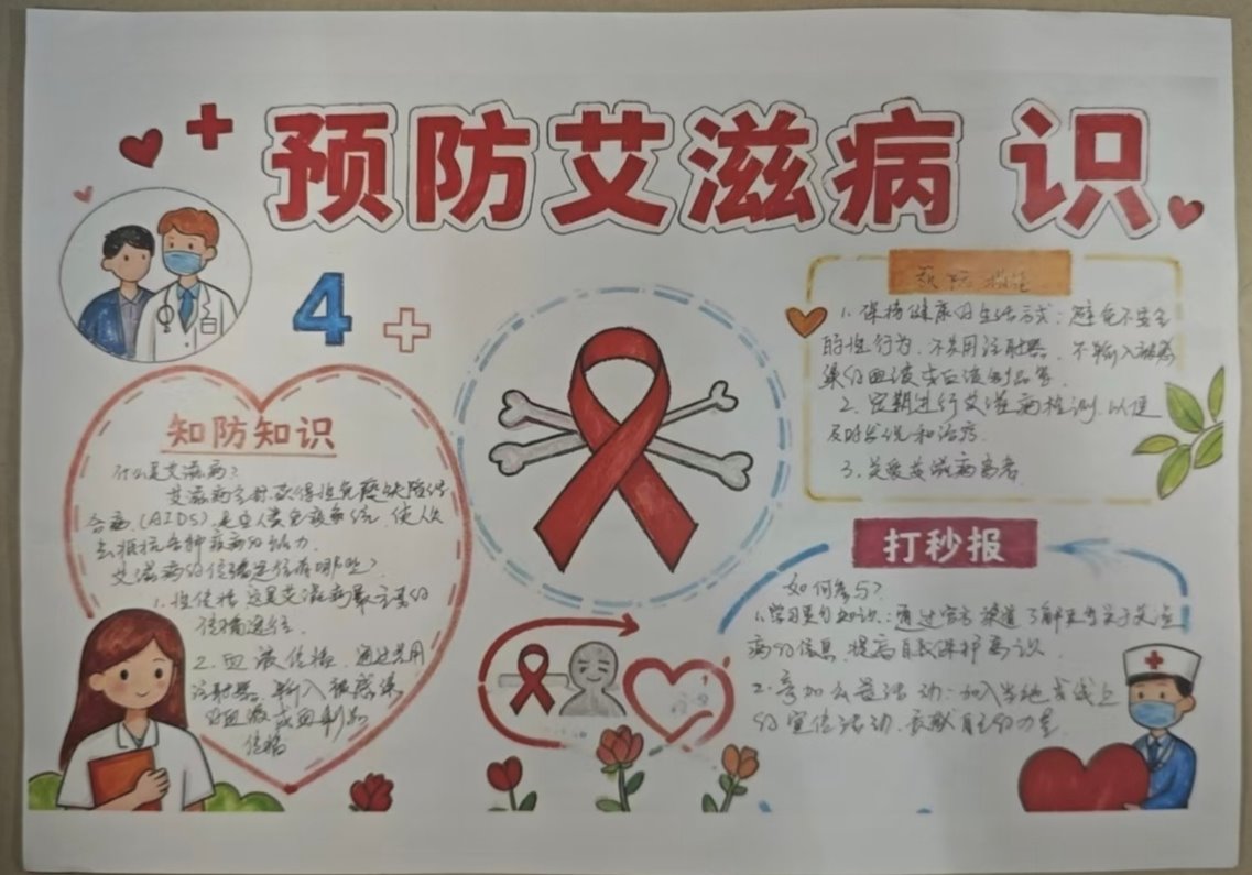 为深入推进艾滋病防治宣传教育,引导学生树立科学防护意识与健康责任观念,学院于近日组织开展了“防艾知识科普”主题手抄报创作与展示活动。活动面向全院学生征集原创作品,并通过线上平台进行集中展示,取得了良好宣传教育效果。