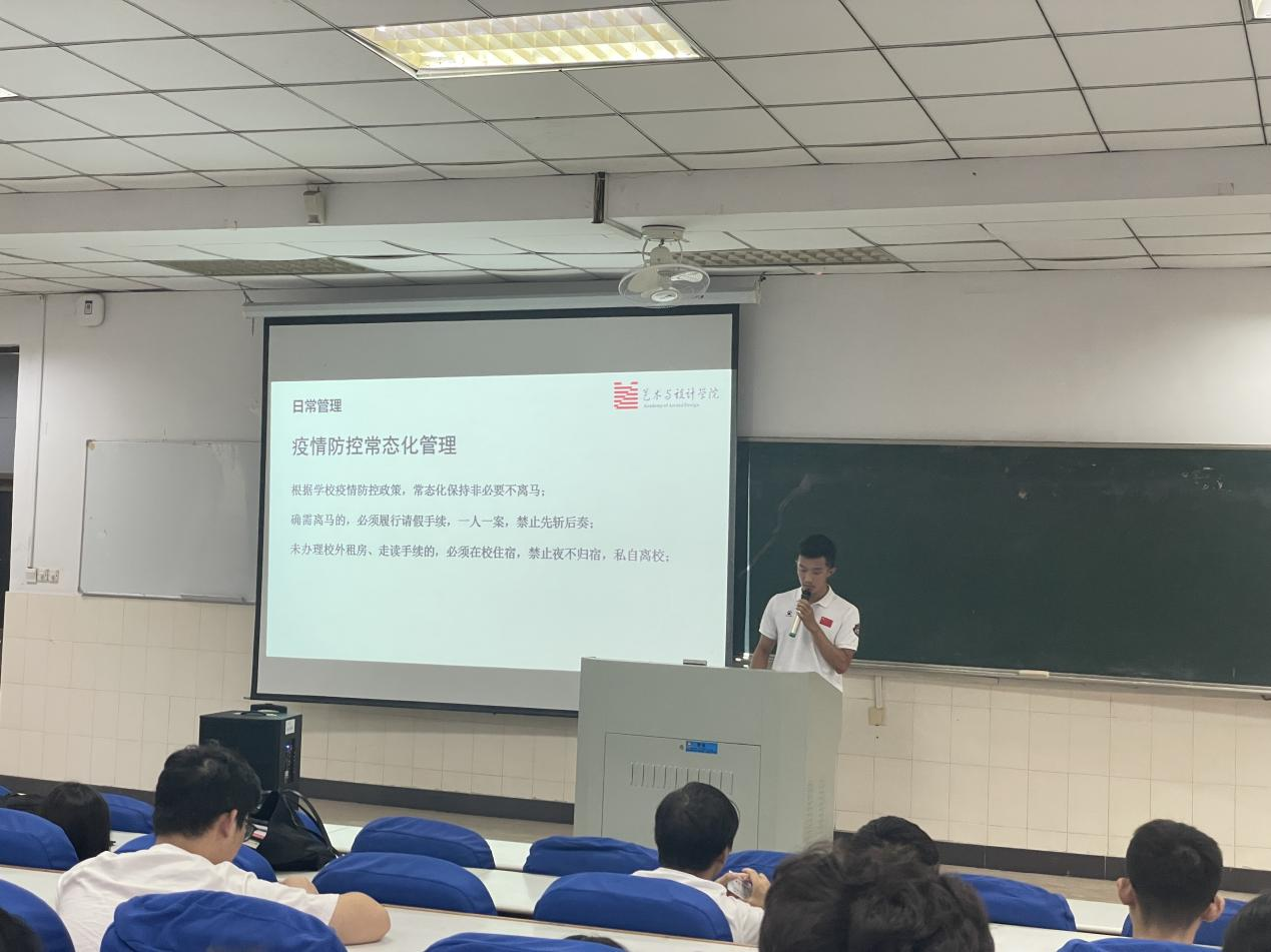 2023届毕业生就业创业工作推进会在秀山校区东阶102顺利召开。学院党委副书记、纪委书记、副院长方勇,校友工作处丁丹,学院全体2023届毕业生参加了此次会议。会议由辅导员孙海澄主持。