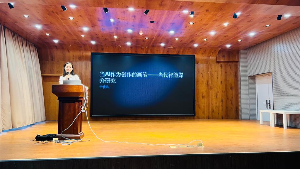 在“教授博士论坛”上,系主任佘醒博士以“形成自我意识,实现自我成长”主题展开解读,敦促同学们建立短、中、长期目标,将自我监督和自我修养带入专业学习和生活,在认知过程中逐渐完善自我,取得自我突破;于梦凡博士围绕“当AI作为创作的画笔——当代智能媒介研究”主题,向同学们讲述了数字媒体专业前沿信息,分析了现代AI技术如何成为设计艺术创作的有利工具。