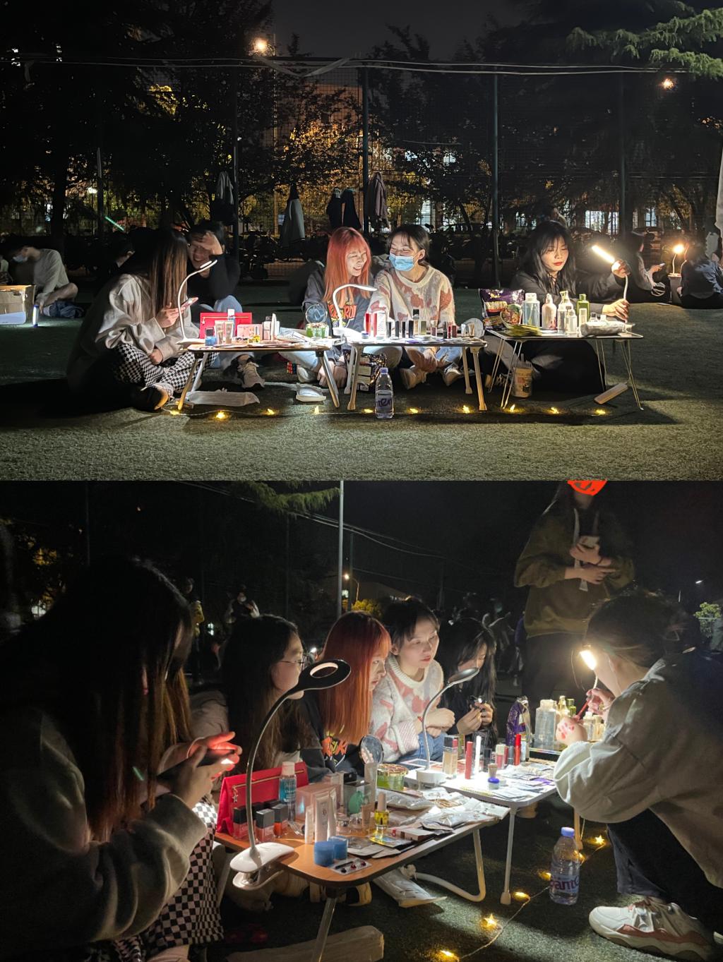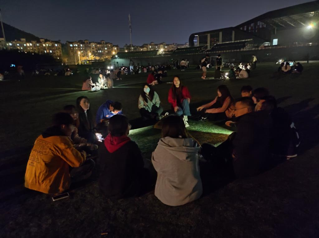 研究生们成群结伴活跃于绿茵场,纸牌游戏、闲物置换、成语接龙、剧本杀等,用欢声笑语打发着闲暇的时光。