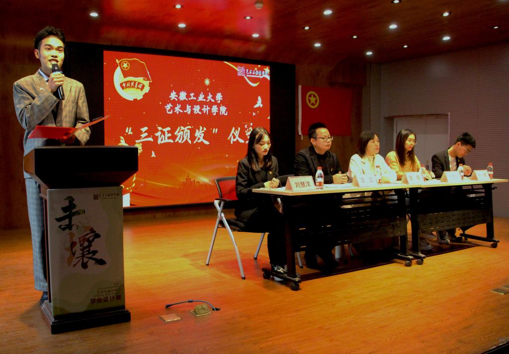 于艺设楼北401隆重举办了2021级新生团员“三证颁发”仪式。副处级辅导员、2021级辅导员赵颖,院团委书记、2020级辅导员汪正,2019级辅导员师梦瑶以及团委学生会主席团代表出席会议,大一各班团支书和团员代表参与。