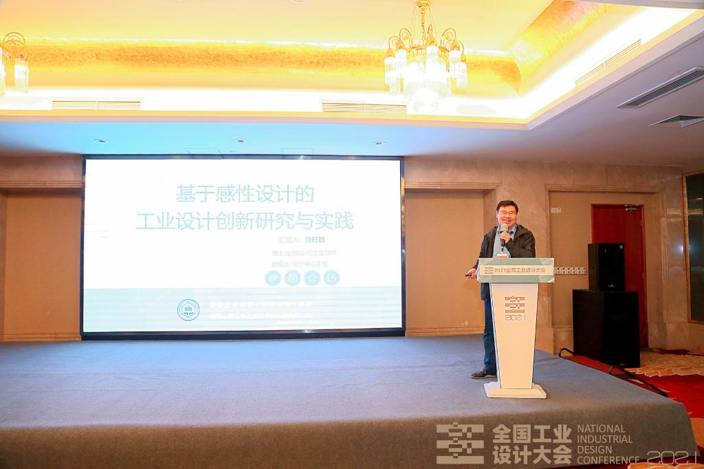 副院长肖旺群受邀在“设计科学”主题论坛作学术报告。他以“基于感性工学的工业设计创新研究与实践”为报告主题,主要分享两大方面内容,一方面是技术创新与设计创新双轮驱动下的产品设计实战案例解析,其中包括牛奶装箱机器人、码垛机器人、六自由度协作机器人、破拆机器人、凿岩钻机、土壤取样钻机、消防机器人等产品从设计到落地的全流程阐释;另一方面是结合生理信号的智能工业机器人感性设计方法研究,工业机器人设计开发研究中,单纯凭借工业设计师的感性思维及创造力进行设计,或者过分强调情感认知领域数据量化研究的介入,都相对片面,展开以上两方面有效结合的研究,探索一种为工业机器人设计创新提供艺术创造力与科学支撑的设计方法。同时,他还将51短视频