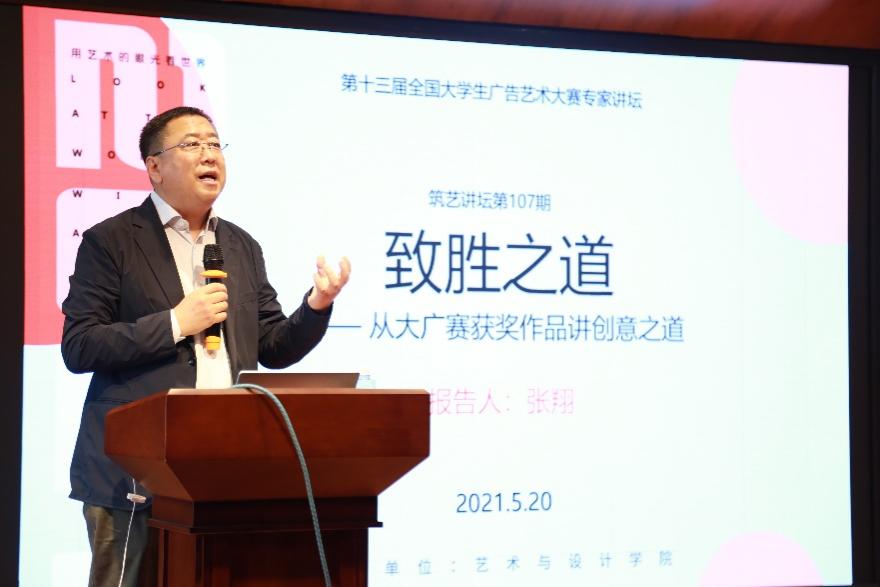 作“致胜之道——从大广赛获奖作品讲创意之道”、“创意有道”和“广告’奖’道理”三场专题学术报告会。视觉艺术设计系全体教师、18级19级视传和数媒本科生以及研究生,分别在主会场和腾讯线上分会场共同聆听了报告会。