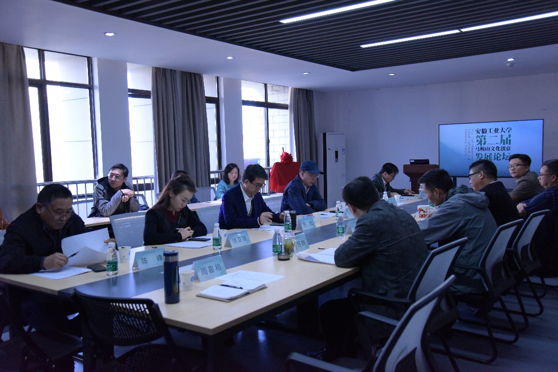 举办第二届地方文化创意发展论坛交流会,会议主题为:联动合作、文化升级、人才创新。在国家大力推进文化事业发展的大背景下,通过政府与高校联动,从李白文化、地域特色文化开发角度,加强关键性学术研究,促进传统文化产业的优化升级,推动市域新兴文化产业的人才培养,提升高校文化事业服务能力,打造高水平城市文化品牌。马鞍山市人大副秘书长、知名文化学者曹化根、南京大学周凯教授、南京艺术学院孙智强教授、江苏省文化艺术研究院书画艺术研究所徐亚慧副所长、马鞍山市电视台副台长阮学义、马鞍山市日报社副主编陈峰、中国李白研究会秘书长周霍祁、南京艺德源动漫有限公司董事长陶陶,学院党委书记张为清、院长汪海波、学院部分教师、研究生参加了交流会。会议由副院长肖旺群主持。