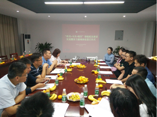 在5楼会议室举行“昨天 · 今天 · 明天” 校友座谈交流暨实习基地协议签订授牌仪式,学院副院长汪海波(主持工作)、副院长肖旺群出席了座谈会,座谈会由副院长庄德红主持。