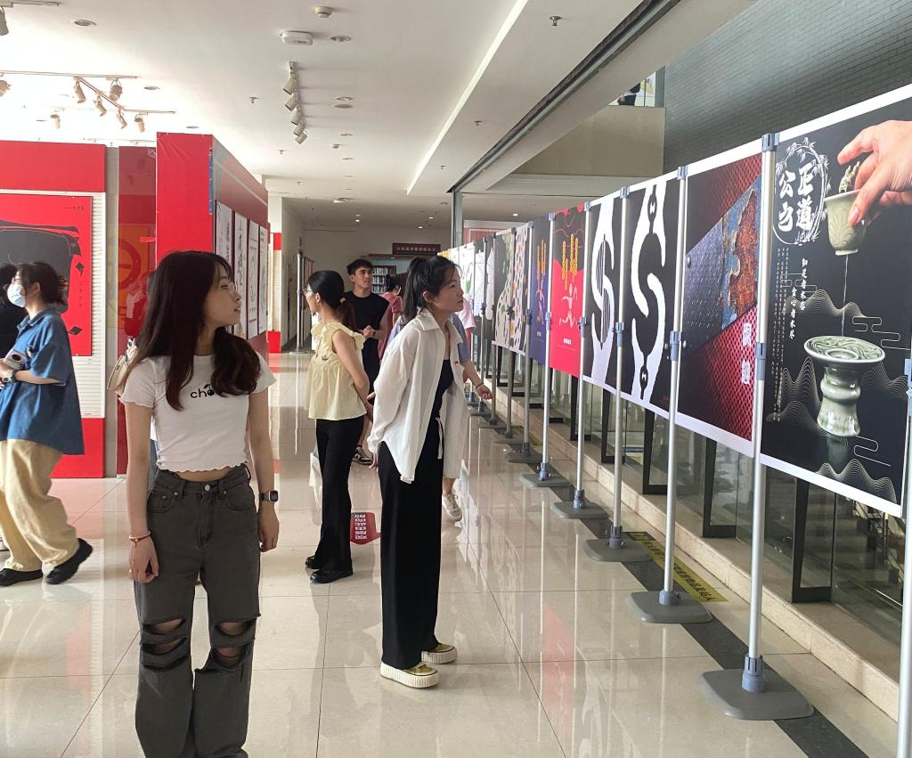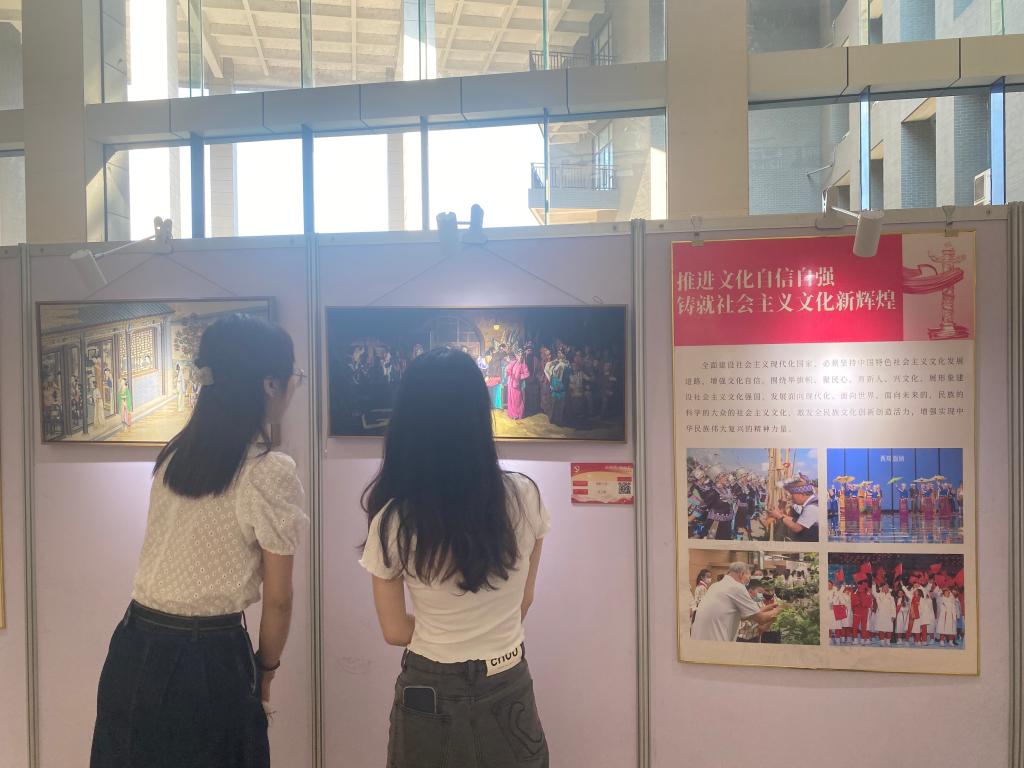 会后,师生党员还一同参观校“新时代,新征程——党的二十大精神系列主题展和第三届“廉政文化精品工程”优秀作品展。
