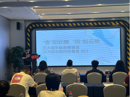 王正乐同学最终获得国一的好成绩,并进行路演。此次路演全方位的展示了其为佰草集品牌设计的内在涵义与创新方案,并从材料、工艺、平面、结构等不同角度分别阐述了产品创新点,赢得了在场师生与选手们的一致认可与赞扬。