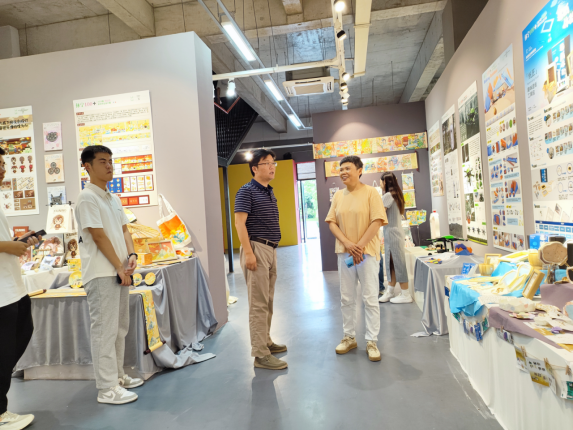 设计艺术馆交流观摩。副院长佘醒参加活动,公共环境艺术系主任郭圣能做讲解、介绍。
