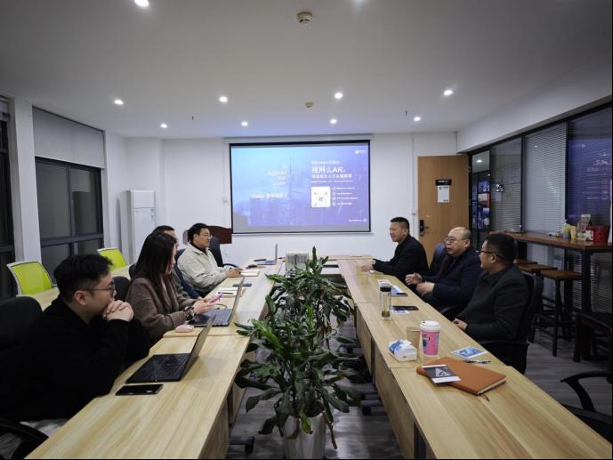 在南京视网么信息科技有限公司,院领导一行重点考察了其在增强现实(AR)、计算机视觉等前沿技术的创新应用。院领导介绍了学院在相关学科的专业特色与人才培养成果,希望双方能依托各自优势,在技术研发、项目合作及学生实习就业等方面实现资源共享与互利共赢。
