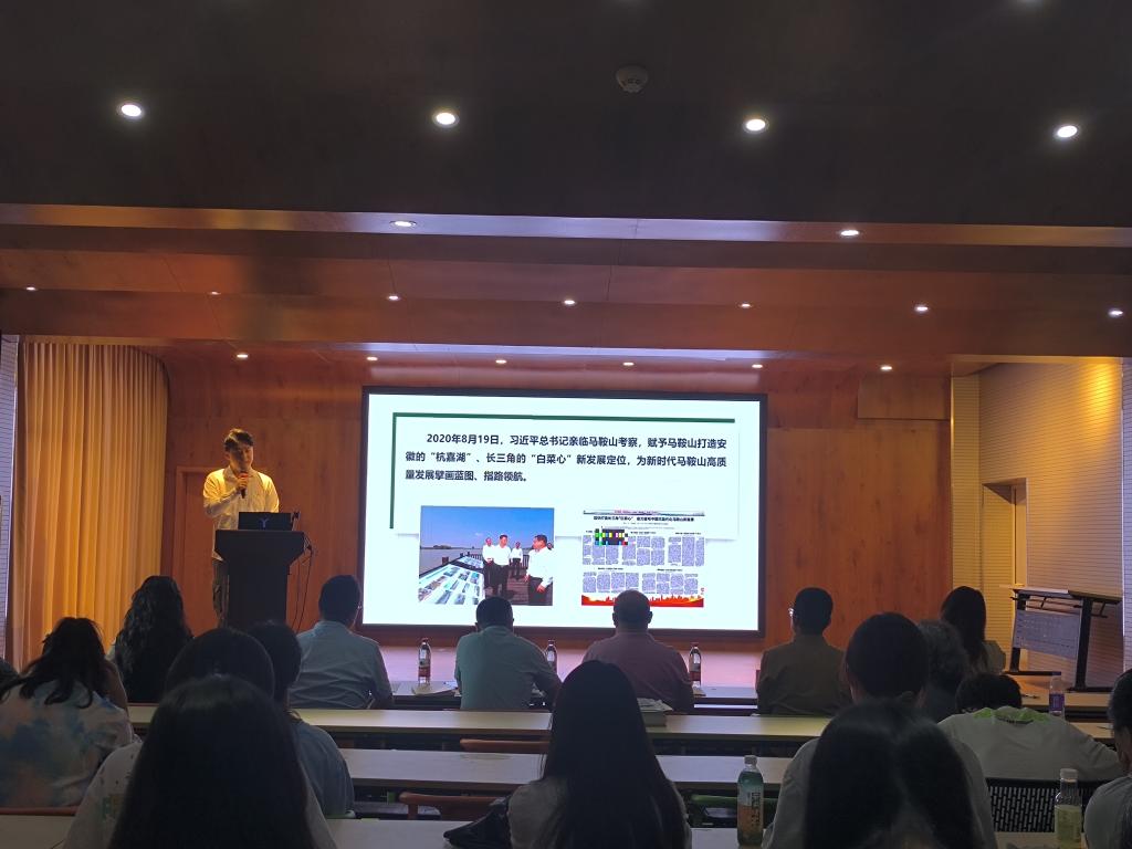 学生党员的讲述同样充满朝气与思考。如学生视觉艺术党支部姜海信同学以马鞍山凹山地质文化公园的蝶变为例,生动阐释了“绿水青山就是金山银山”的理念;研究生第一、第二党支部分别以“党员身份认知”为切入点展开分享;学生环境设计党支部以身边热血青年的故事展现新一代青年的家国情怀;学生工业设计党支部胡美蓉以交通工具的变迁为线索,深情回顾了党带领人民奋斗的百年历程,生动诠释了“人民至上”的根本立场。其他学生党员或围绕党员身份认同、科技强国使命,或结合教育报国理想,用青年视角和身边故事阐述大道理,充分展现了将个人成长自觉融入国家发展的坚定信念。