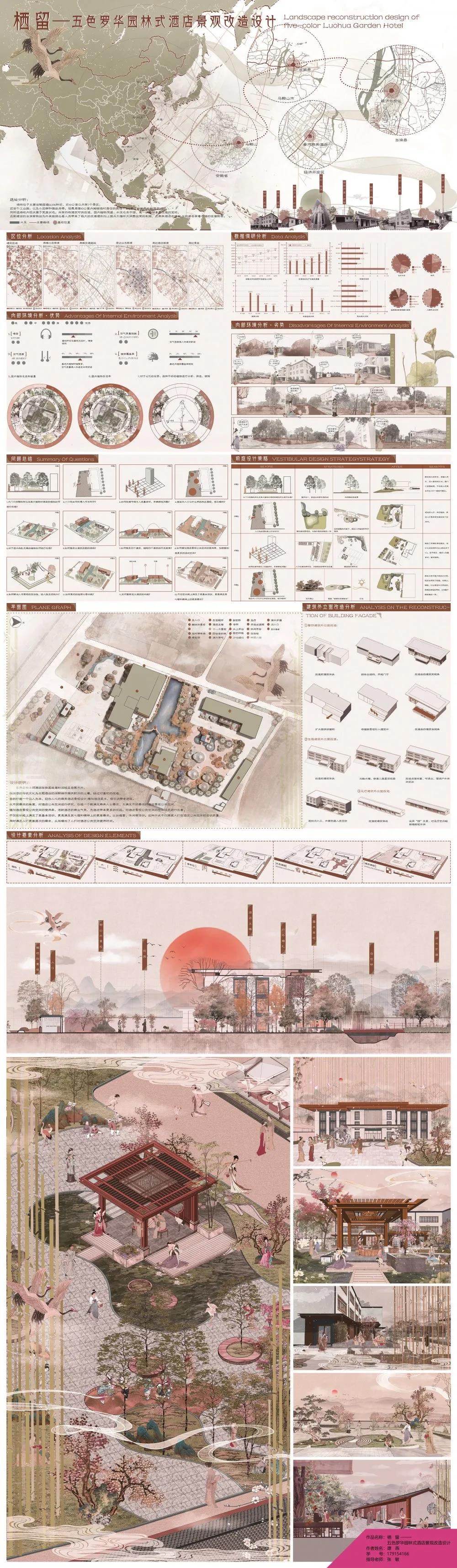 设计说明:经过对基地的改造,打造一个以人为本,迎合人心的商务酒店景观设计,增加酒店卖点,吸引消费者进驻。从市民需求的角度,对酒店公共空间进行研究,创造一个既满足商务人士需求,又满足市民需求的酒店景观公共空间,增加酒店景观公共空间的使用率,活跃酒店的商业气氛,为酒店带来更多的收益。