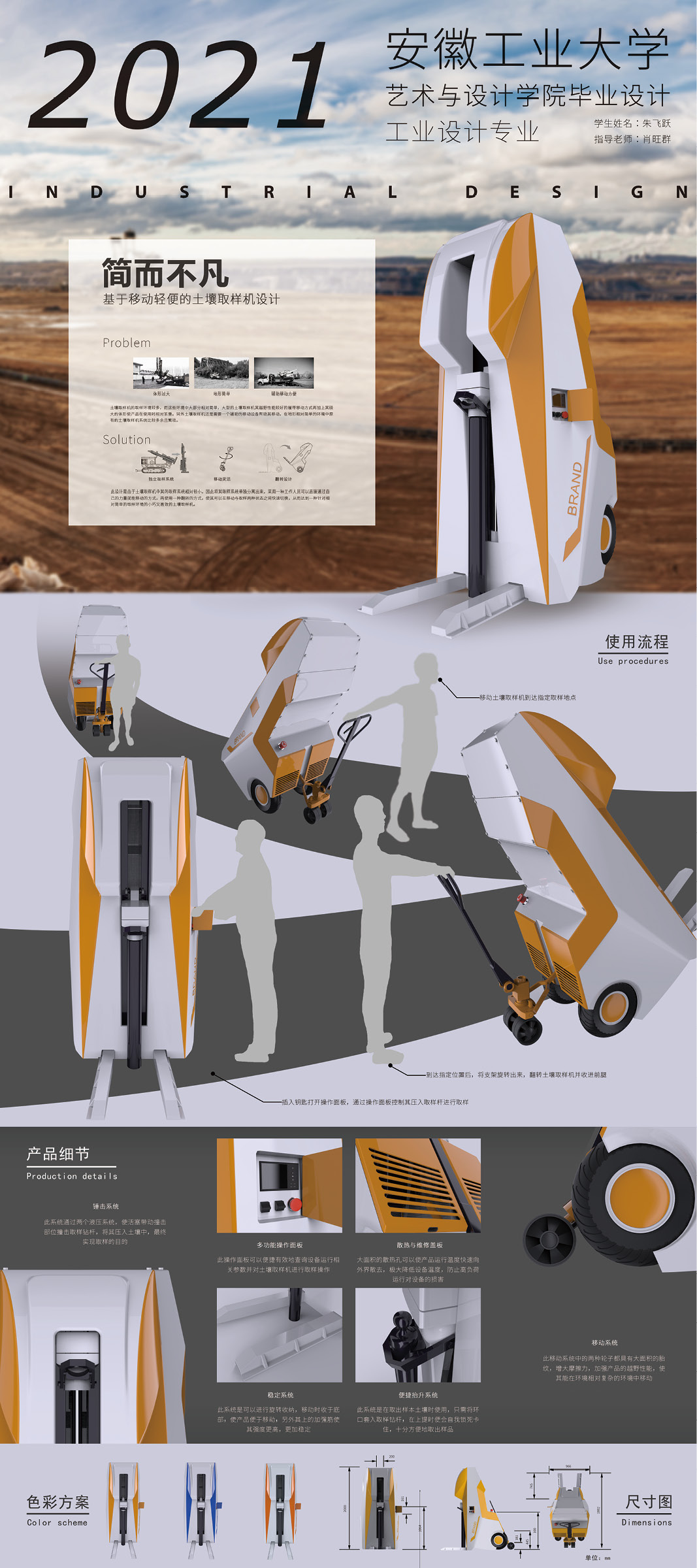 工业设计系有工业设计和产品设计两个专业,工业设计专业为省级一流专业,在人才培养实施过程中围绕新时期教育教学发展理念,以学生为中心,突出学生能力培养以及毕业生输出质量。本次毕业设计内容涵盖机械装备、生活家居、智能电器三大方向。机械装备方向关注5G智能时代背景下的医疗救援,智能仓储及运输等领域,以工程技术为依托,创新产品造型与人机交互方式;生活家居方向以新生代视角讲述生活,主张设计追寻自然美学,倡导设计回归生活本质;智能电器方向聚焦智慧城市,重新定义后疫情时代下的医疗、出行、社区治理,重视信息时代下设计中人的智慧参与和可持续发展。