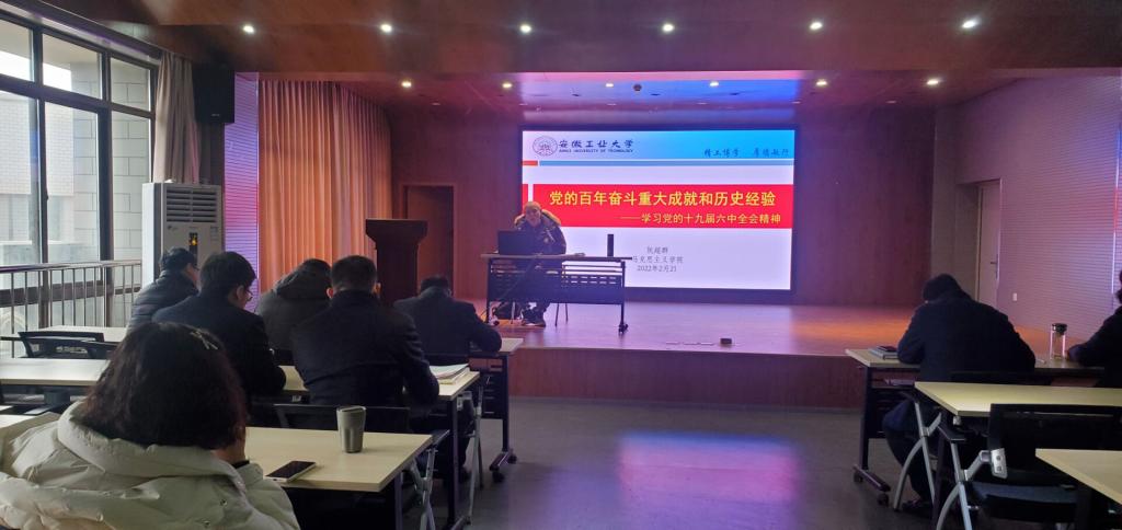 举行党的十九届六中全会精神宣讲会,马克思主义学院阮超群教授做宣讲报告。学院全体教职工参加了宣讲会。