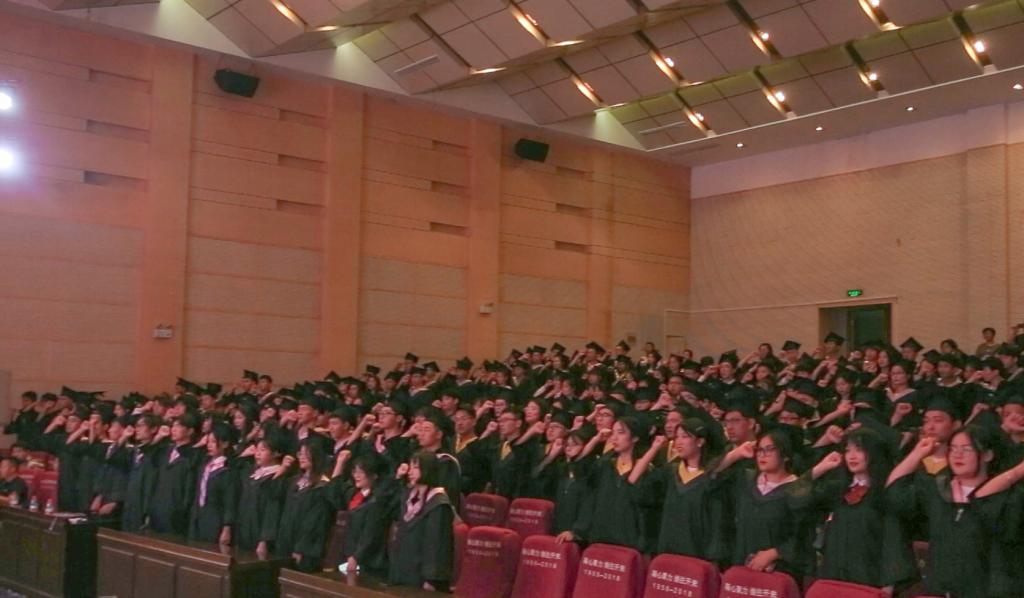随后,全体毕业生庄严宣誓,将铭记师长教诲,肩负时代使命;崇尚科学,追求真理;奉献社会,服务人民;为祖国富强不辞辛劳,为民族复兴奋斗终生!
