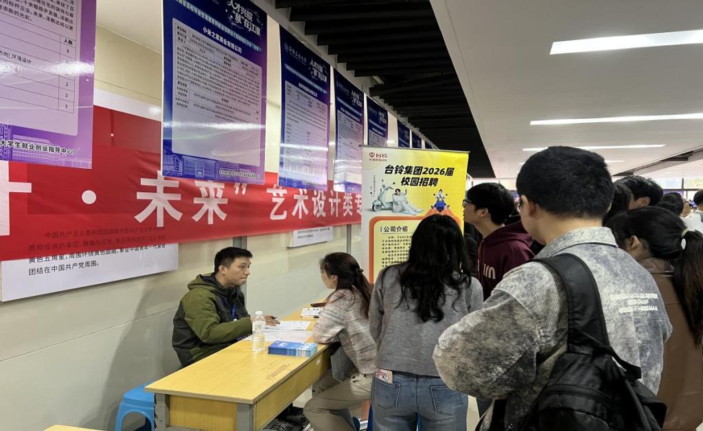 在新大学生活动中心一楼成功举办“设计·未来”艺术设计类专场招聘会。学院领导班子全体成员、毕业班辅导员、部分毕业班班主任、导师与2026届本科及硕士毕业生共同参与了本次招聘会。此次招聘会为即将开启职业生涯的艺术设计人才提供了与业界对接的重要平台,现场气氛热烈,秩序井然,获得参会各方一致好评。