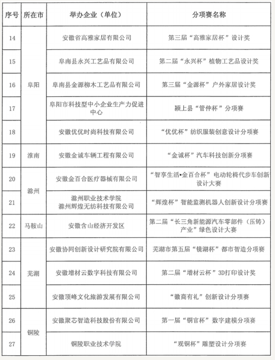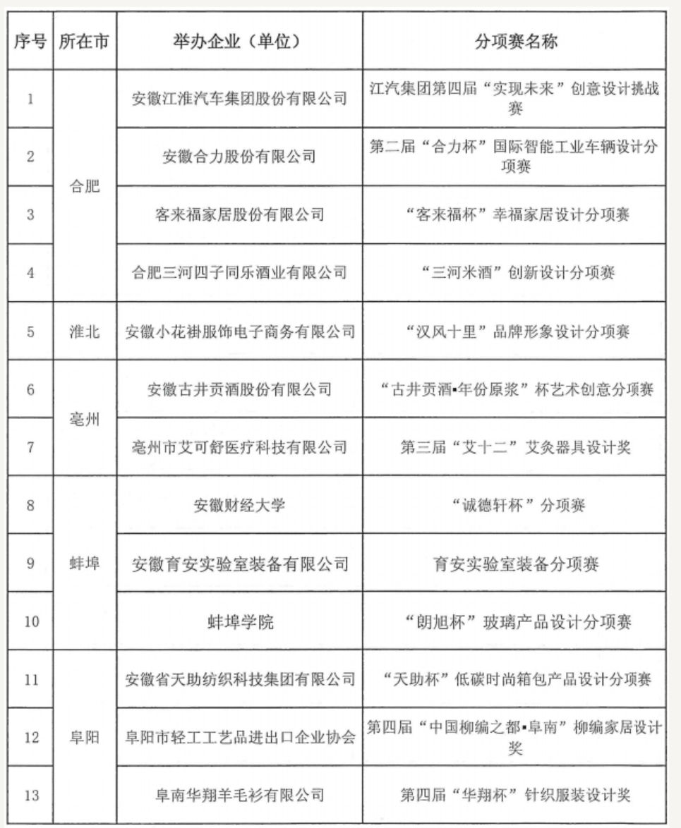 安徽省工业设计大赛专项赛(27项)
